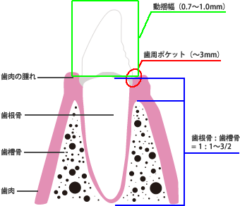歯周ポケットの深さが3mm以内、歯のグラグラ揺れる幅が1度(0.7mm~1.0mm)以内のもの。